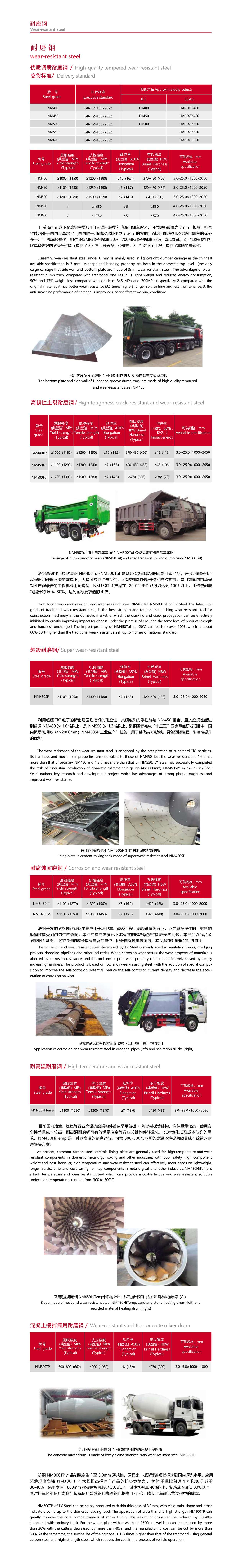 漣鋼高韌性止裂耐磨鋼 NM400Tuf-NM500Tuf 是系列傳統(tǒng)耐磨鋼的最新升級(jí)產(chǎn)品,在保證同級(jí)別產(chǎn) 品強(qiáng)度和硬度不變的前提下,大幅度提高沖擊韌性,可有效抑制鋼板開裂和裂紋擴(kuò)展,是目前國內(nèi)市場強(qiáng) 韌性匹配最佳的工程機(jī)械用耐磨鋼。NM450Tuf 產(chǎn)品在 -20℃沖擊性能可以達(dá)到 100J 以上,比傳統(tǒng)耐磨 鋼提升約 60%-80%,達(dá)到國標(biāo)要求值的 4 倍。