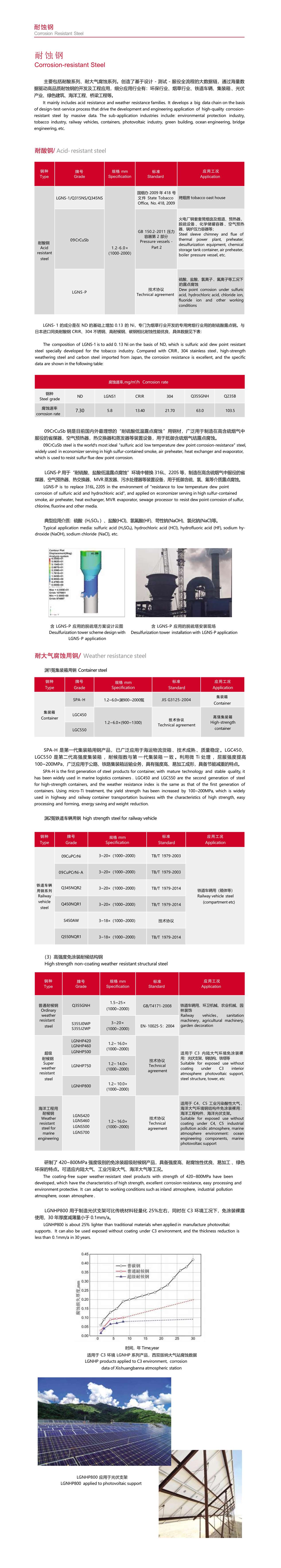 主要包括耐酸系列、耐大氣腐蝕系列。創(chuàng)造了基于設(shè)計(jì) - 測試 - 服役全流程的大數(shù)據(jù)鏈,通過海量數(shù) 據(jù)驅(qū)動(dòng)高品質(zhì)耐蝕鋼的開發(fā)及工程應(yīng)用,細(xì)分應(yīng)用行業(yè)有:環(huán)保行業(yè)、煙草行業(yè)、鐵道車輛、集裝箱 、光伏 產(chǎn)業(yè)、綠色建筑、海洋工程、橋梁工程等。
