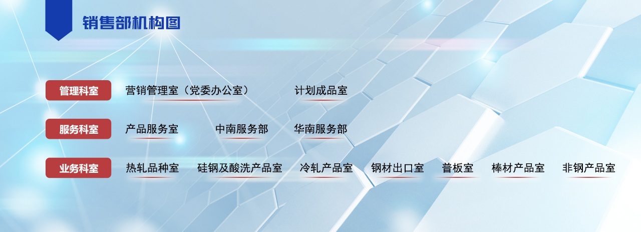 鋼材出口室:負(fù)責(zé)熱處理產(chǎn)品、汽車用鋼、中高碳鋼、船板、管線、鍍鋅、冷軋、酸洗、電工鋼等產(chǎn)品的國際銷售業(yè)務(wù)。15007386816